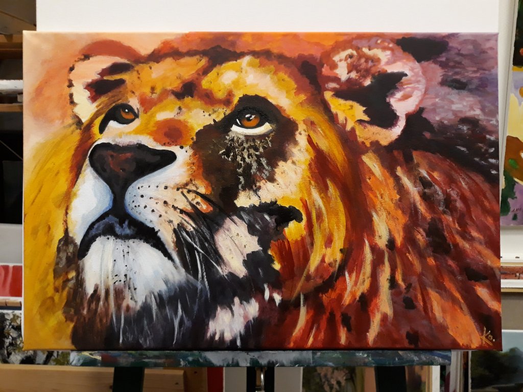 Älskar kattdjur och född i lejonets tecken. Så det blev ännu ett färgglatt lejon. Denna var väldigt rolig att måla. Lite svårt få till övergångsrna mellan olika färger. Men det blev riktigt bra till slut. 🙂