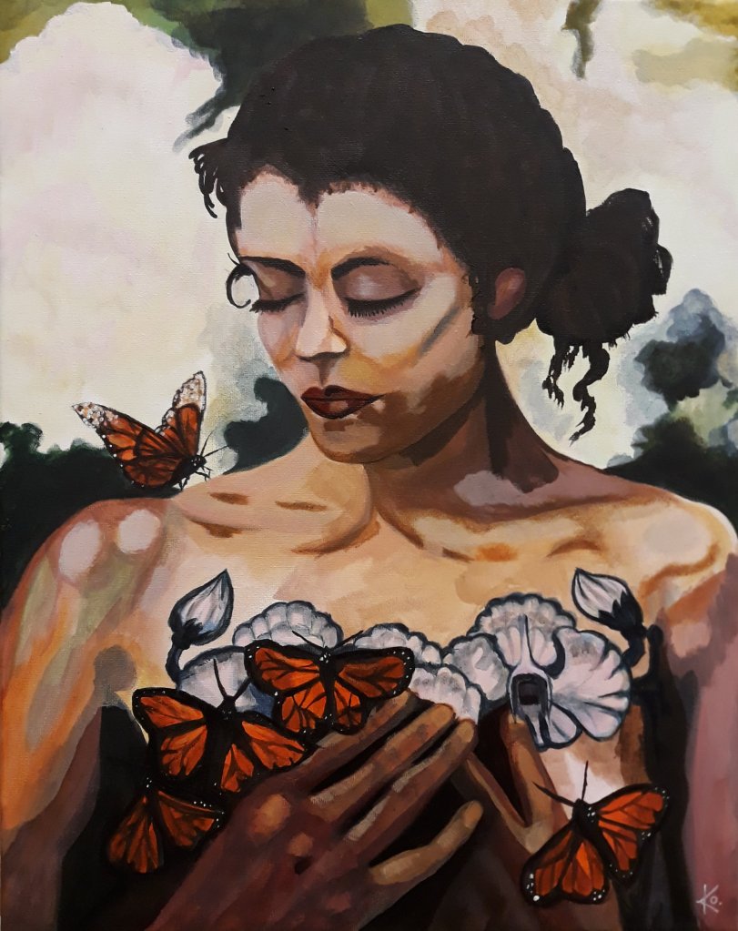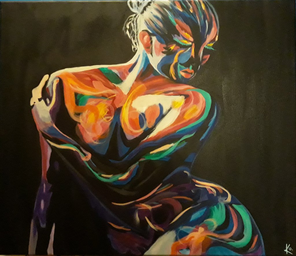 Färg och svart i kontrast är nog lite min grej. 😊 Finns en konstform som kallas feuvism och det är nog lite åt det hållet jag gillar att måla. Denna gången blev det från ett foto av en krppsmålad kvinna.