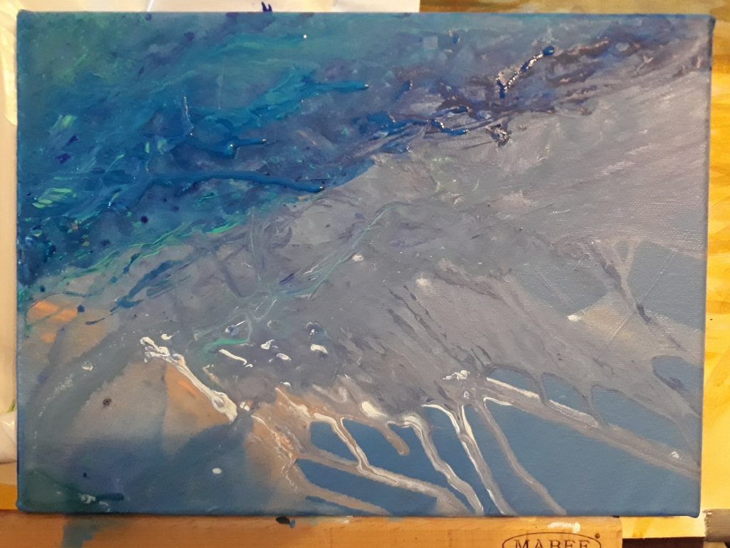 Håller på att testa en teknik jag inte prövat innan. Mycket rolig! Blir väldigt abstrakt och kan användas som det blir eller målas till i efterhand. Har inte bestämt ännu hur det ska bli med dessa. 😊 Men kul och användbar teknik helt klart!
